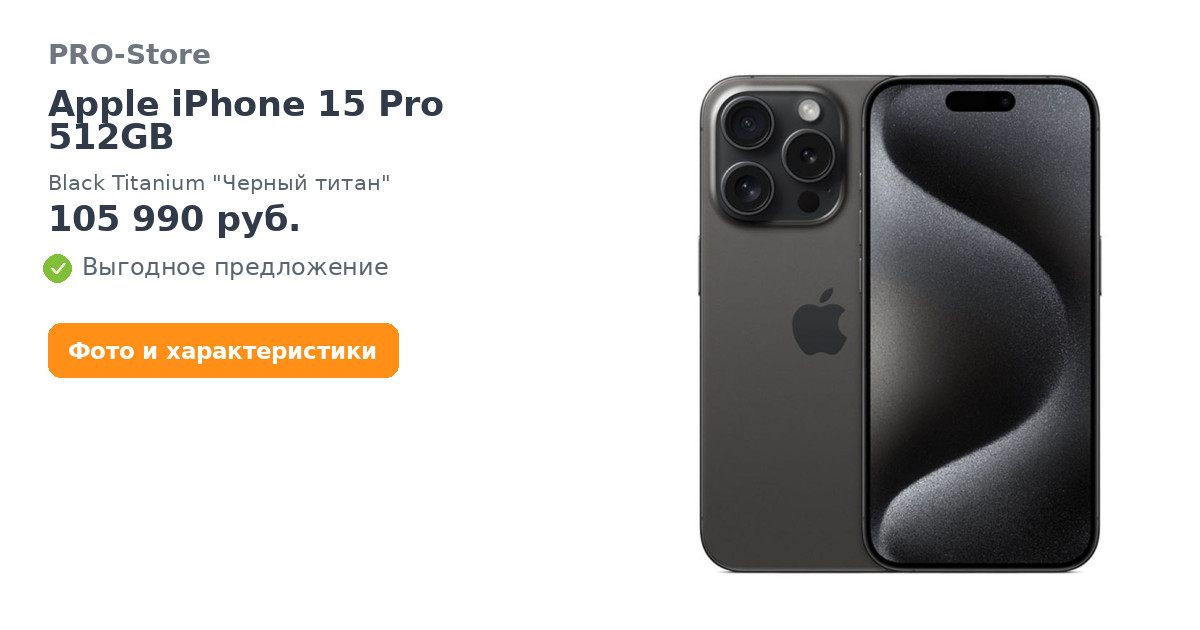 apple iphone 15 pro 512gb black titanium "черный титан"