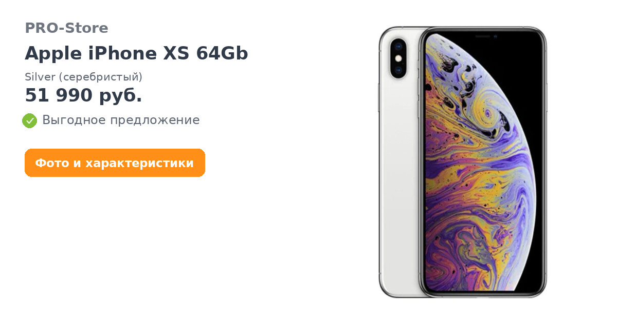 Смартфон Apple iPhone XS 64Gb Silver (серебристый)
