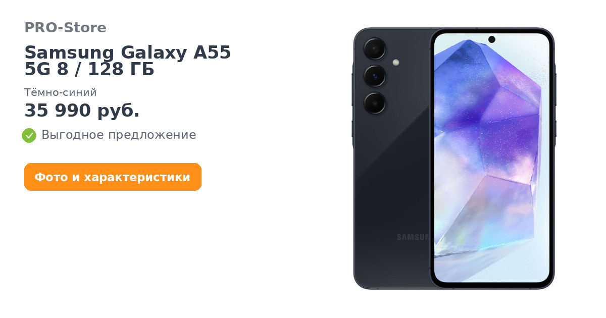 Смартфон Samsung Galaxy A55 5G 8/128 ГБ, Тёмно-синий