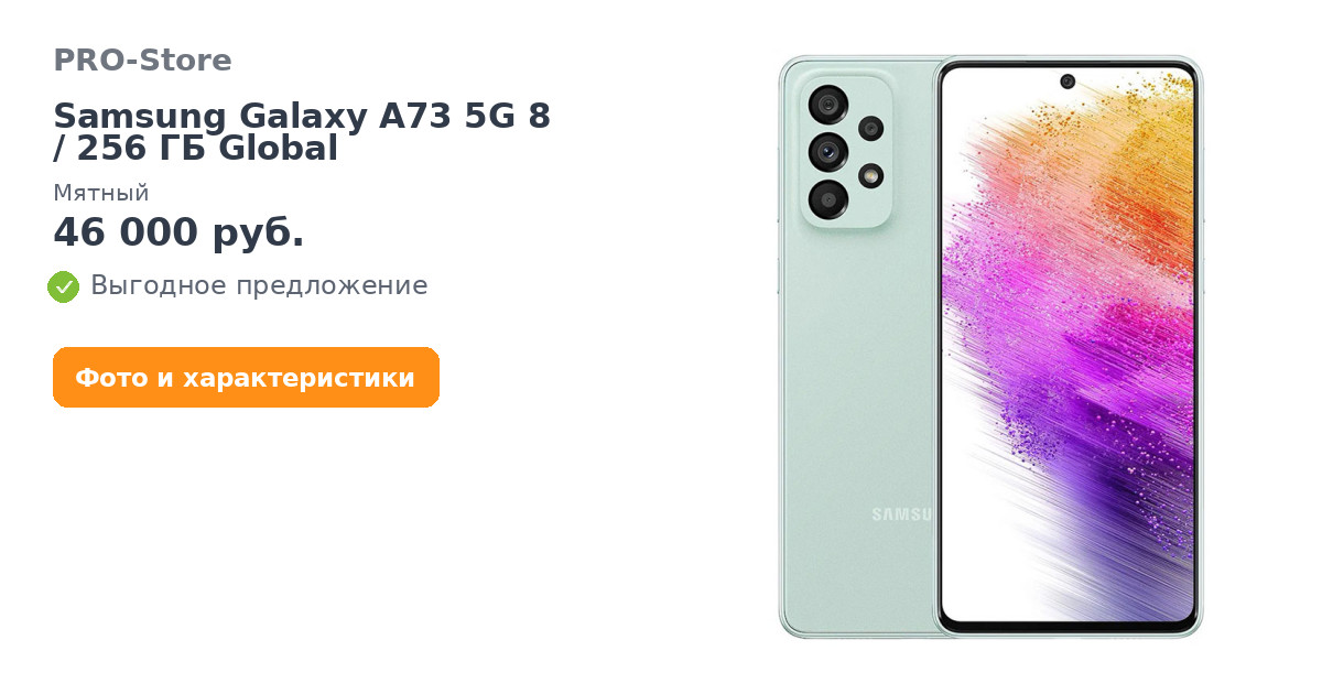 Смартфон Samsung Galaxy A73 5G 8/256 ГБ Global, Мятный