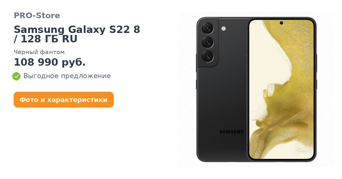 Смартфон Samsung Galaxy S22 8/128 ГБ RU, Черный фантом
