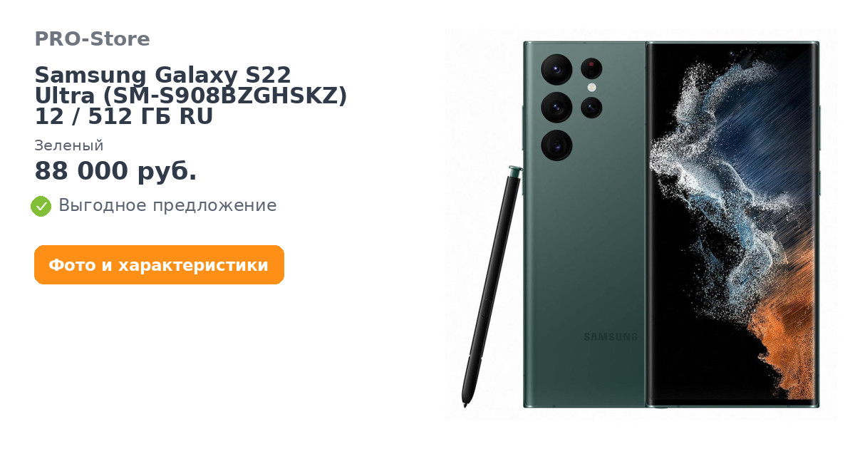 Смартфон Samsung Galaxy S22 Ultra (SM-S908BZGHSKZ) 12/512 ГБ RU, Зеленый