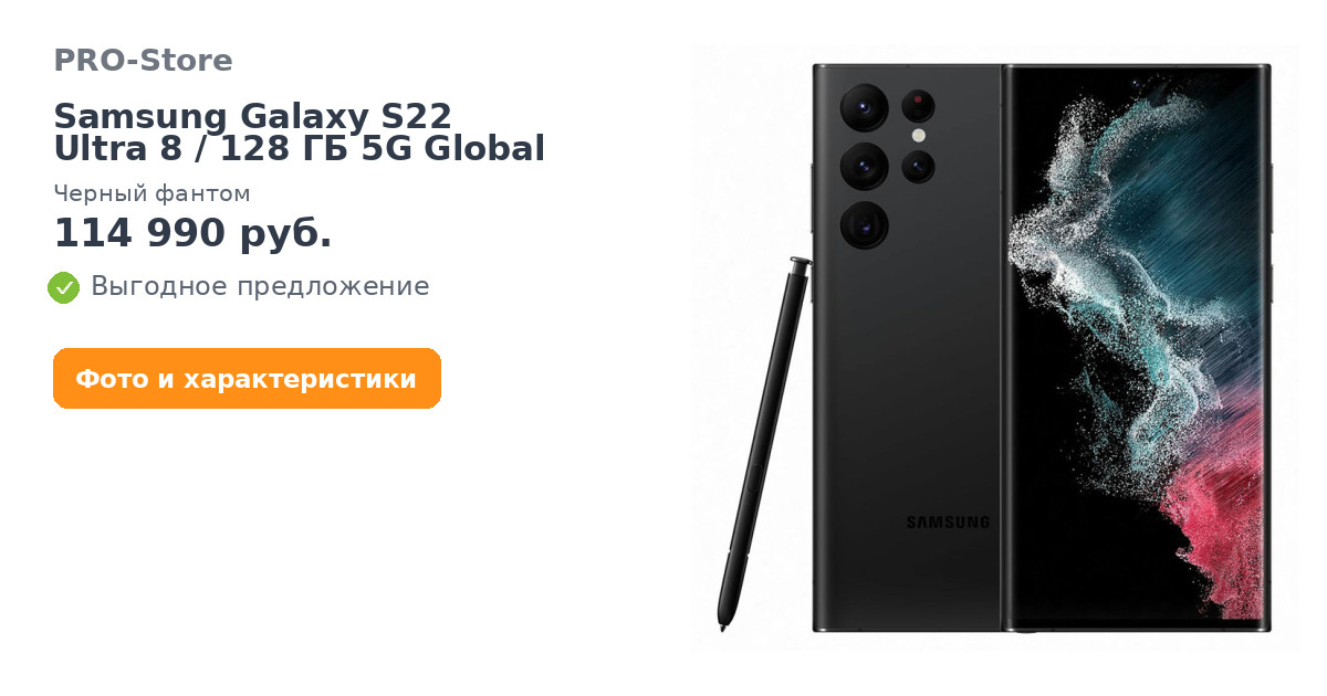 Смартфон Samsung Galaxy S22 Ultra 8/128 ГБ 5G Global, Черный фантом