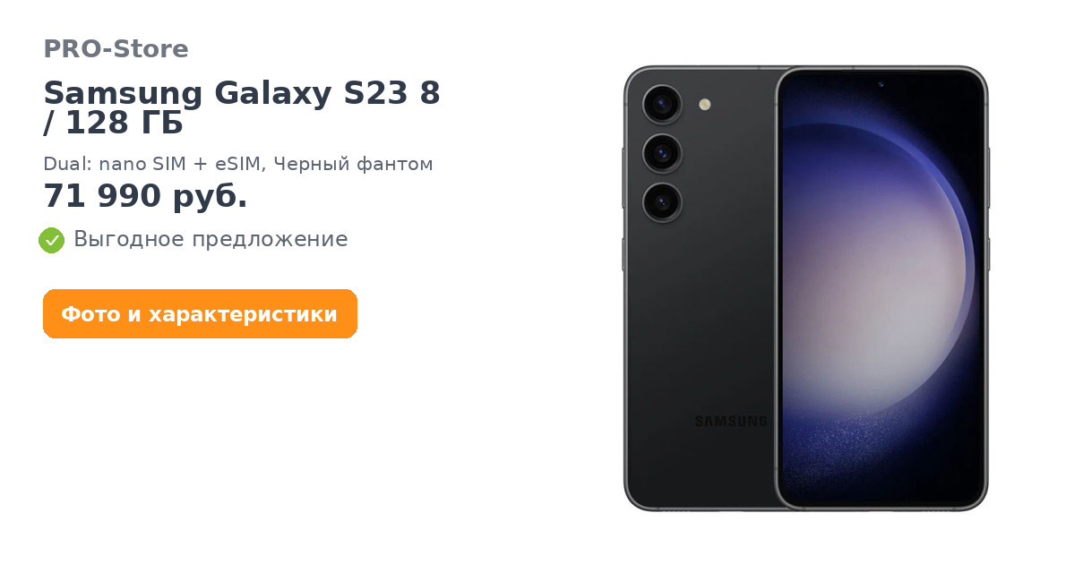 Смартфон Samsung Galaxy S23 8/128 ГБ, Dual: nano SIM + eSIM, Черный фантом