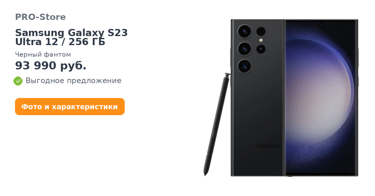 Смартфон Samsung Galaxy S23 Ultra 12/256 ГБ, Черный фантом