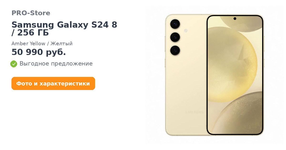 Смартфон Samsung Galaxy S24 8/256 ГБ, Amber Yellow/Желтый