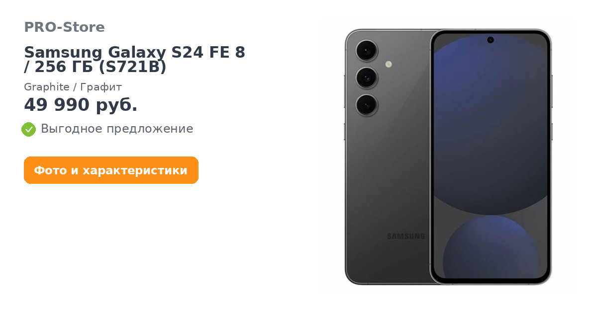 Смартфон Samsung Galaxy S24 FE 8/256 ГБ (S721B), Graphite/Графит