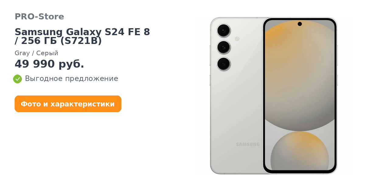 Смартфон Samsung Galaxy S24 FE 8/256 ГБ (S721B), Gray/Серый
