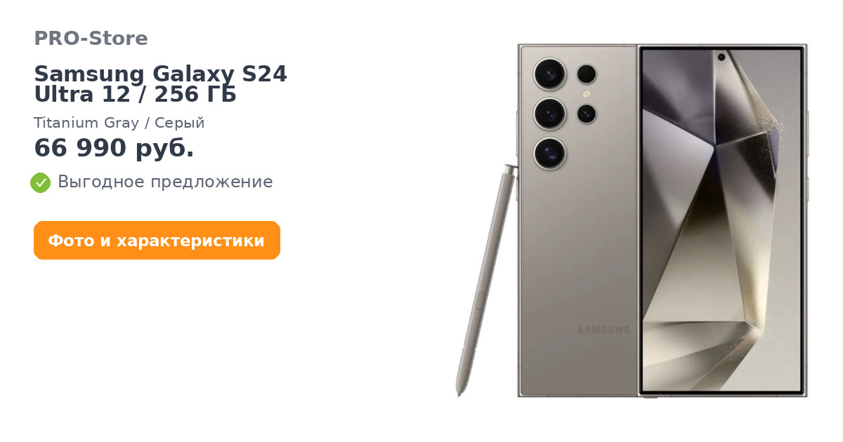 Смартфон Samsung Galaxy S24 Ultra 12/256 ГБ, Titanium Gray/Серый