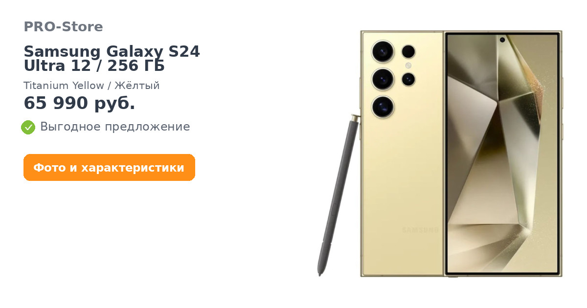 Смартфон Samsung Galaxy S24 Ultra 12/256 ГБ, Titanium Yellow/Жёлтый