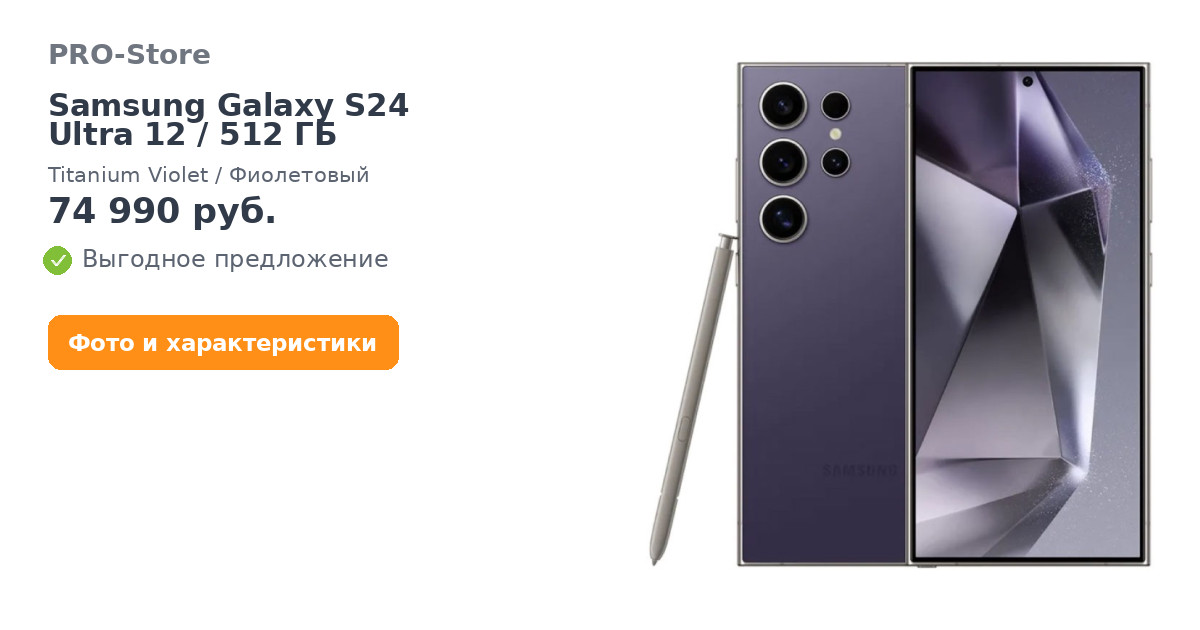 Смартфон Samsung Galaxy S24 Ultra 12/512 ГБ, Titanium Violet/Фиолетовый