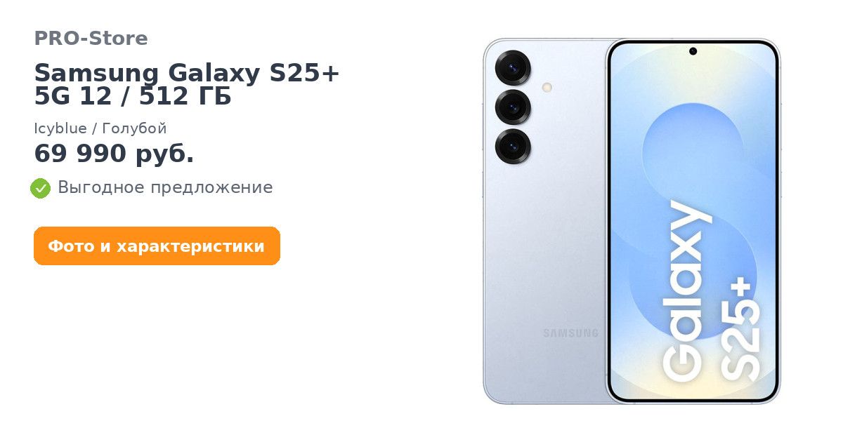 Смартфон Samsung Galaxy S25+ 5G 12/512 ГБ, Icyblue/Голубой
