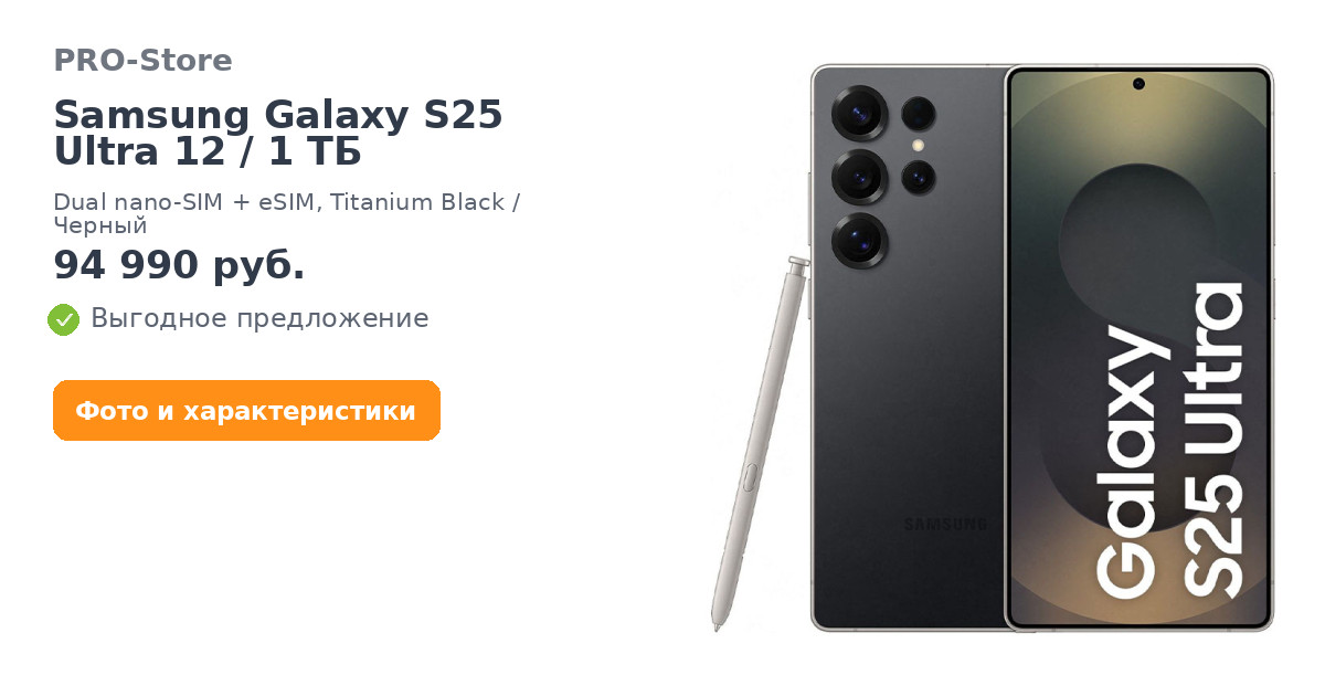 Смартфон Samsung Galaxy S25 Ultra 12/1 ТБ, Dual nano-SIM + eSIM, Titanium Black/Черный