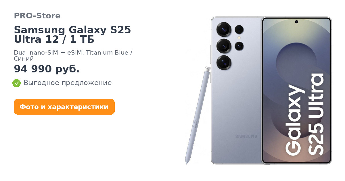 Смартфон Samsung Galaxy S25 Ultra 12/1 ТБ, Dual nano-SIM + eSIM, Titanium Blue/Синий