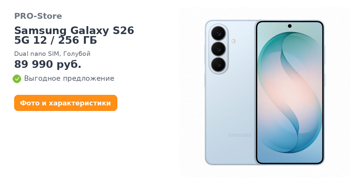 Дизайн и цветаGalaxy S26 и S26+ выполнены в фирменной минималистичной стилистике Samsung и выглядят аккуратно за счёт чистых линий корпуса. В линейке заявлены четыре цветовых варианта: фиолетовый, голубой, чёрный и белый. Такой набор оттенков позволяет выбрать как спокойный классический вариант, так и более заметный цвет.
