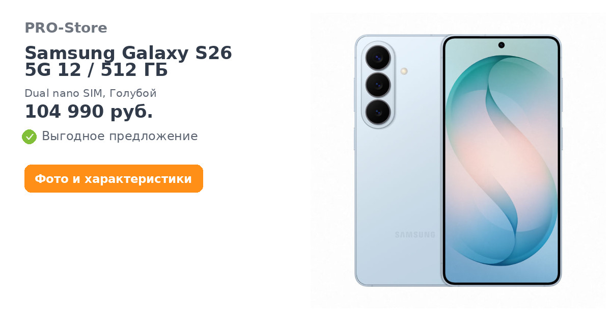Дизайн и цветаGalaxy S26 и S26+ выполнены в фирменной минималистичной стилистике Samsung и выглядят аккуратно за счёт чистых линий корпуса. В линейке заявлены четыре цветовых варианта: фиолетовый, голубой, чёрный и белый. Такой набор оттенков позволяет выбрать как спокойный классический вариант, так и более заметный цвет.