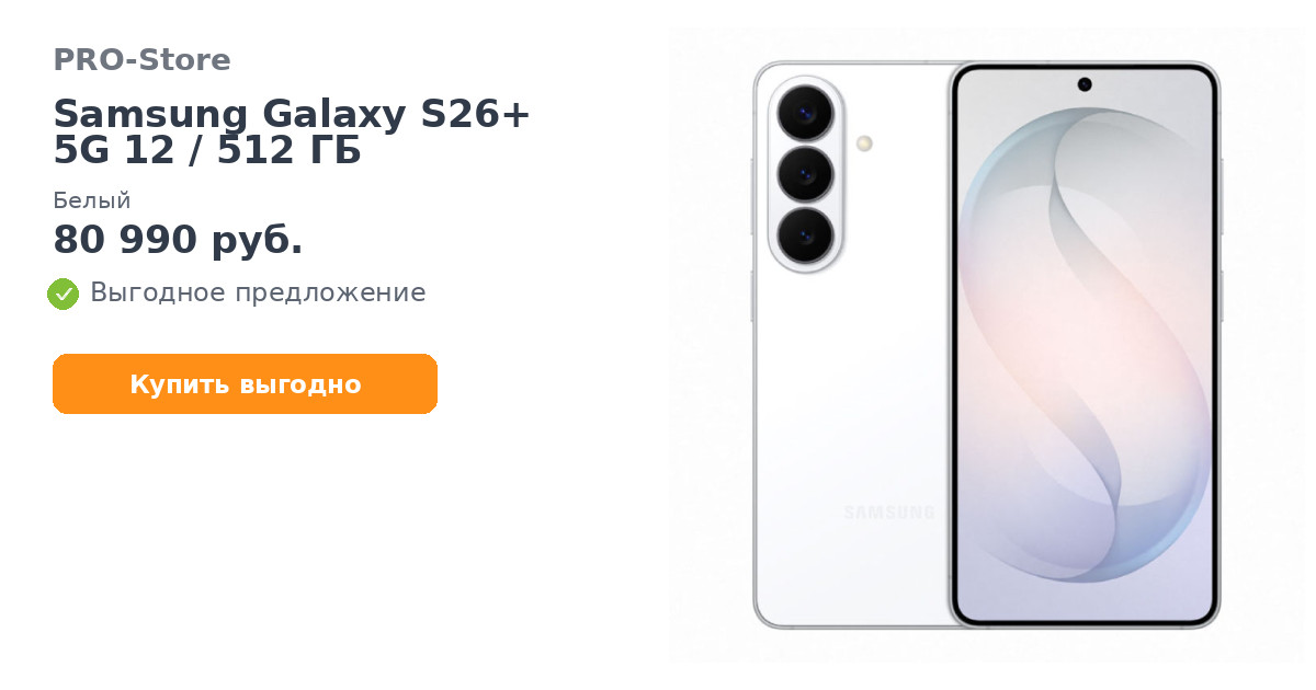 Смартфон Samsung Galaxy S26+ 5G 12/512 ГБ, Белый