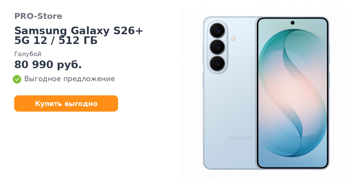 Смартфон Samsung Galaxy S26+ 5G 12/512 ГБ, Голубой