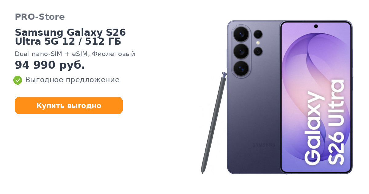 Смартфон Samsung Galaxy S26 Ultra 5G 12/512 ГБ, Dual nano-SIM + eSIM, Фиолетовый
