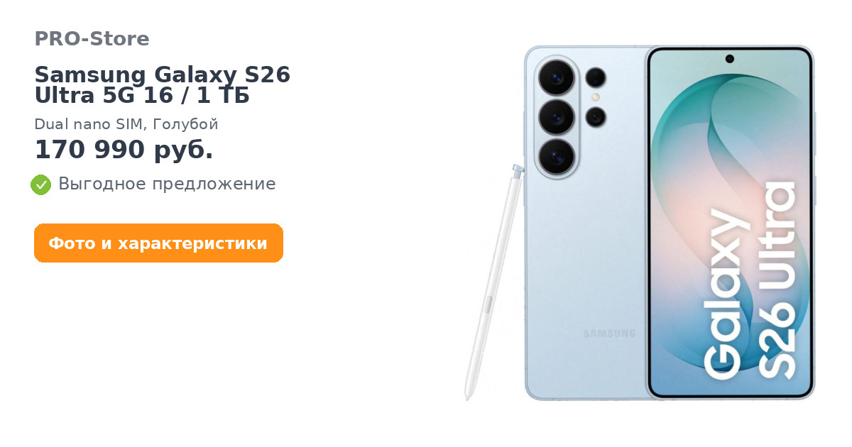 Смартфон Samsung Galaxy S26 Ultra 5G 16/1 ТБ, Dual nano SIM, Голубой