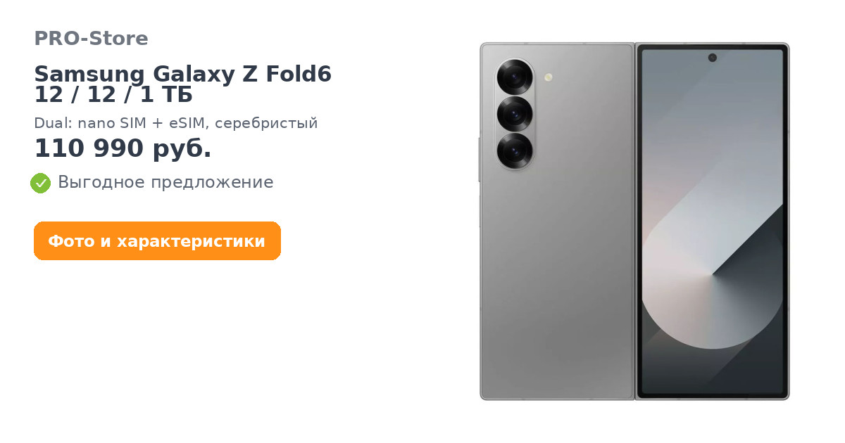 Смартфон Samsung Galaxy Z Fold6 12/12/1 ТБ, Dual: nano SIM + eSIM, серебристый