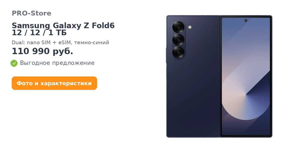 Смартфон Samsung Galaxy Z Fold6 12/12/1 ТБ, Dual: nano SIM + eSIM, темно-синий