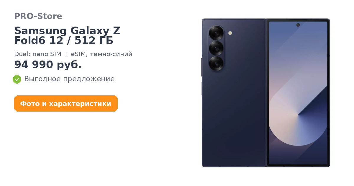 Смартфон Samsung Galaxy Z Fold6 12/512 ГБ, Dual: nano SIM + eSIM, темно-синий
