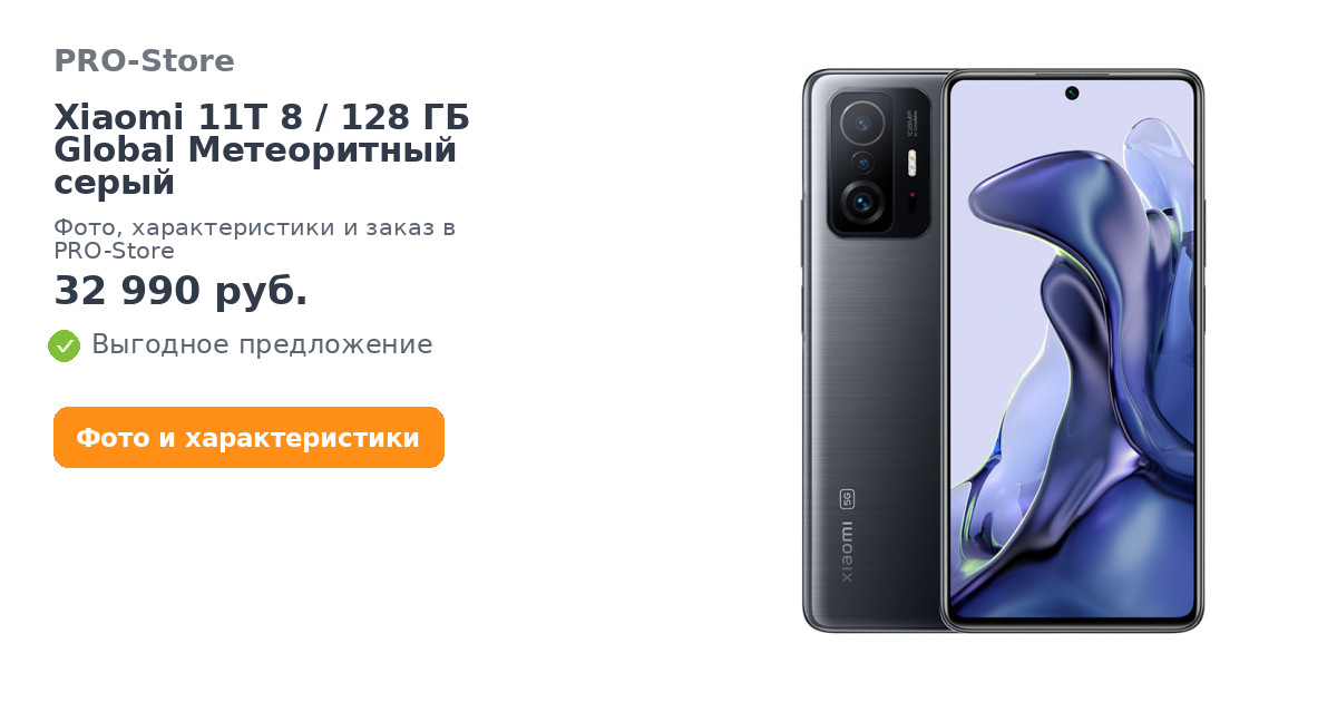 Смартфон Xiaomi 11T 8/128 ГБ Global Метеоритный серый