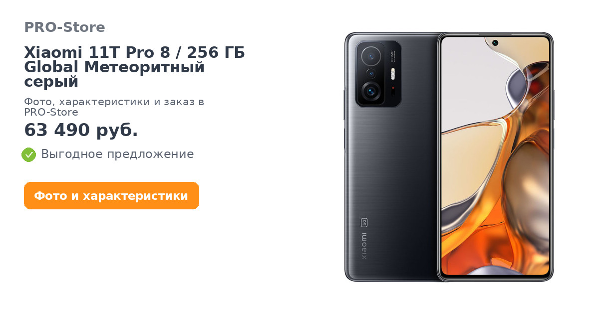 Смартфон Xiaomi 11T Pro 8/256 ГБ Global Метеоритный серый