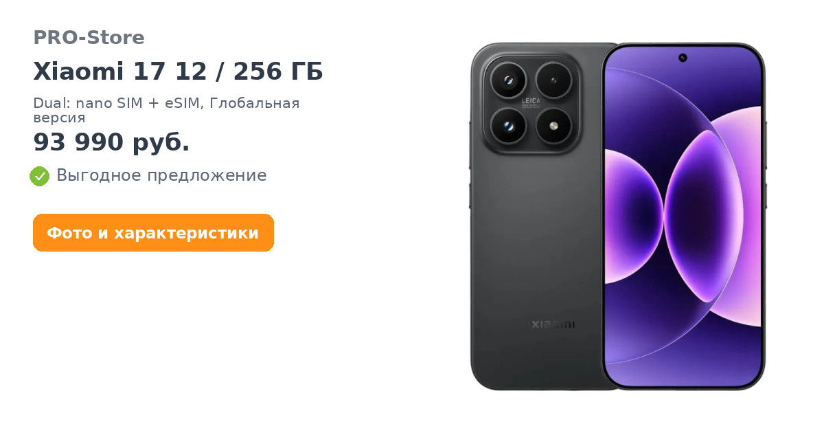 Смартфон Xiaomi 17 12/256 ГБ, Dual: nano SIM + eSIM, Глобальная версия, Черный/Black