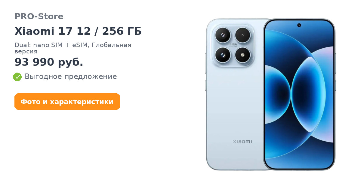 Смартфон Xiaomi 17 12/256 ГБ, Dual: nano SIM + eSIM, Глобальная версия, Голубой/Ice Blue