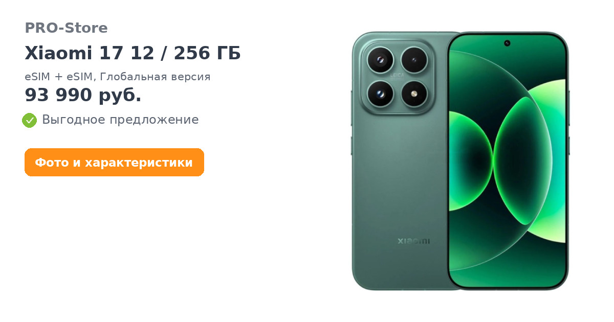 Смартфон Xiaomi 17 12/256 ГБ, eSIM + eSIM, Глобальная версия, Зеленый/Venture Green