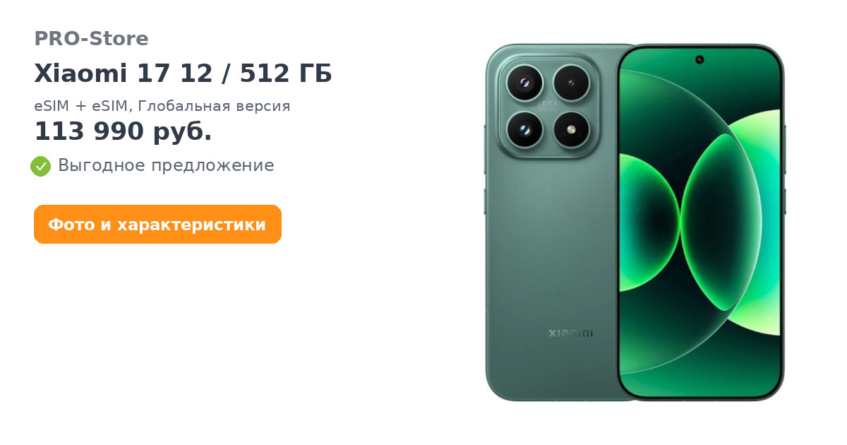 Смартфон Xiaomi 17 12/512 ГБ, eSIM + eSIM, Глобальная версия, Зеленый/Venture Green