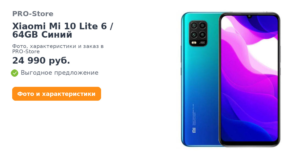 Смартфон Xiaomi Mi 10 Lite 6/64GB Синий
