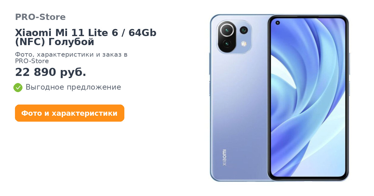 Смартфон Xiaomi Mi 11 Lite 6/64Gb (NFC) Голубой