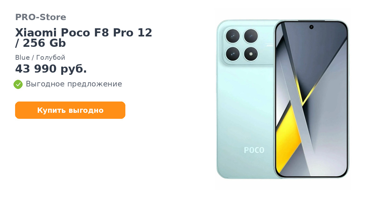 Смартфон Xiaomi Poco F8 Pro 12/256 Gb, Blue/Голубой
