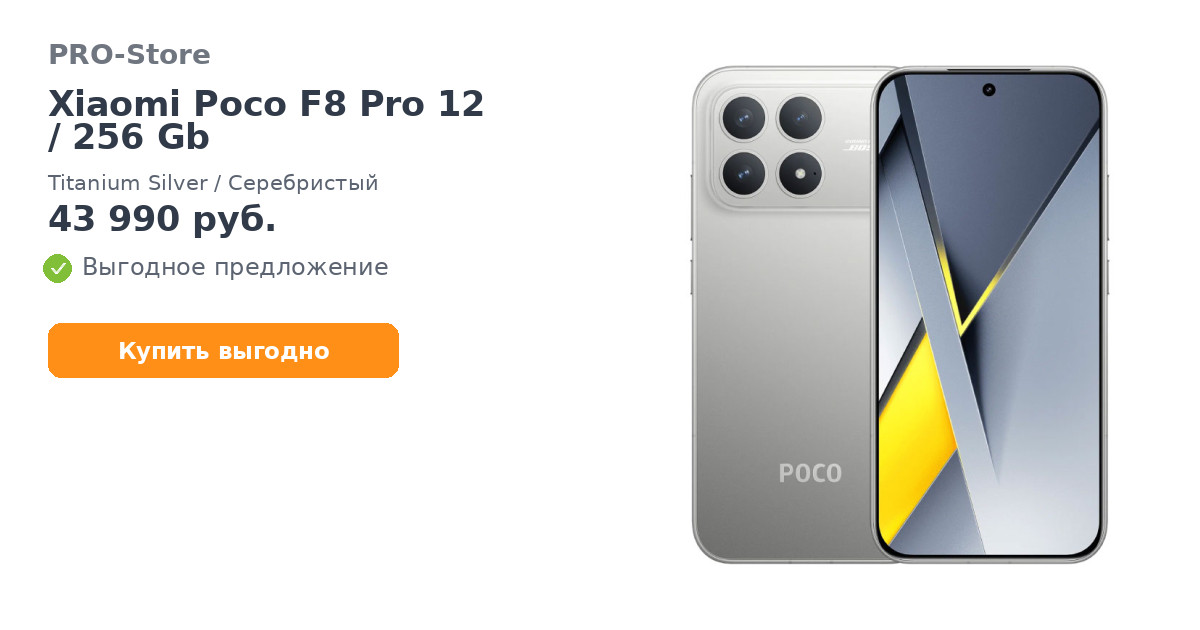 Смартфон Xiaomi Poco F8 Pro 12/256 Gb, Titanium Silver/Серебристый