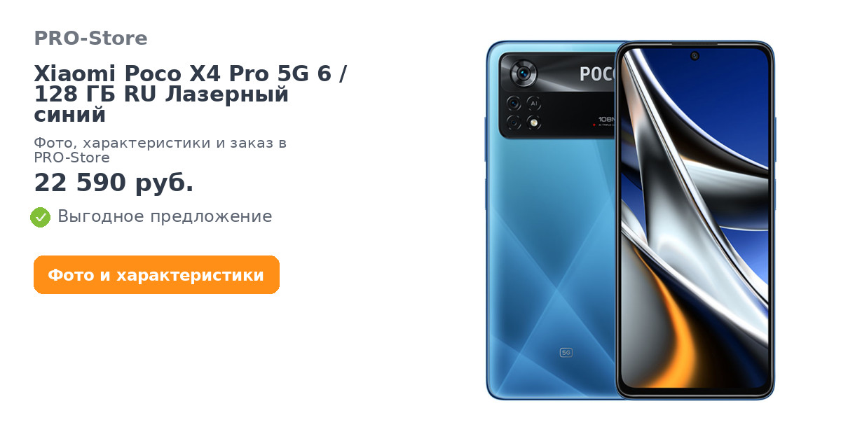 Смартфон Xiaomi Poco X4 Pro 5G 6/128 ГБ RU Лазерный синий