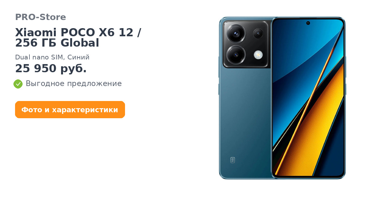 Смартфон Xiaomi POCO X6 12/256 ГБ Global, Dual nano SIM, Синий