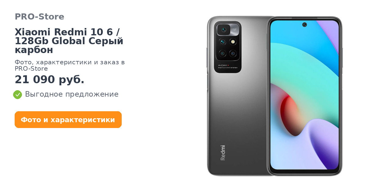 Смартфон Xiaomi Redmi 10 6/128Gb Global Серый карбон