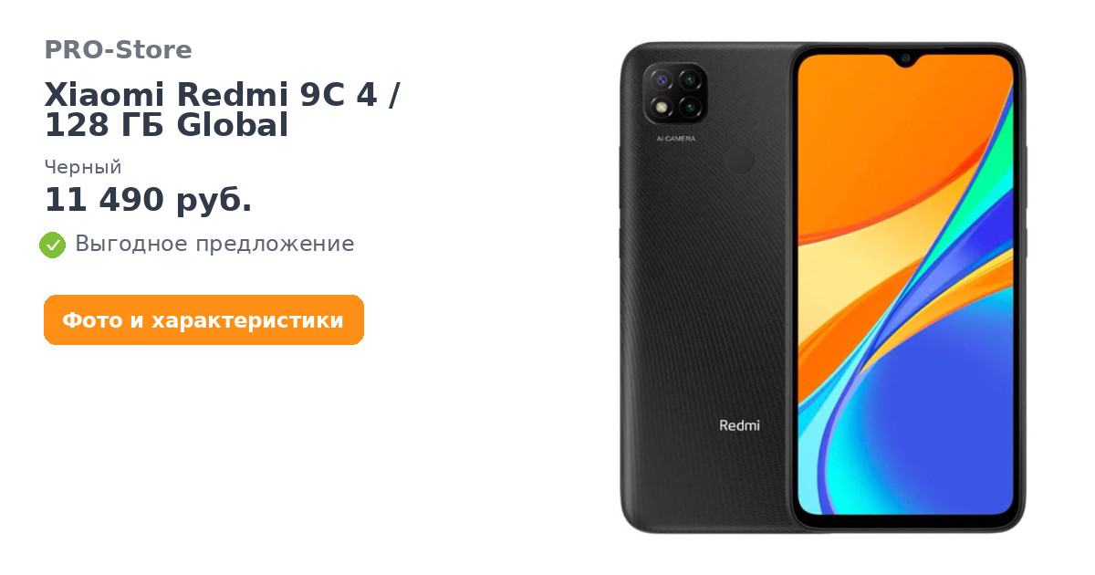 Смартфон Xiaomi Redmi 9C 4/128 ГБ Global, Черный