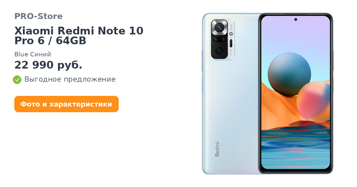 Смартфон Xiaomi Redmi Note 10 Pro 6/64GB Blue Синий