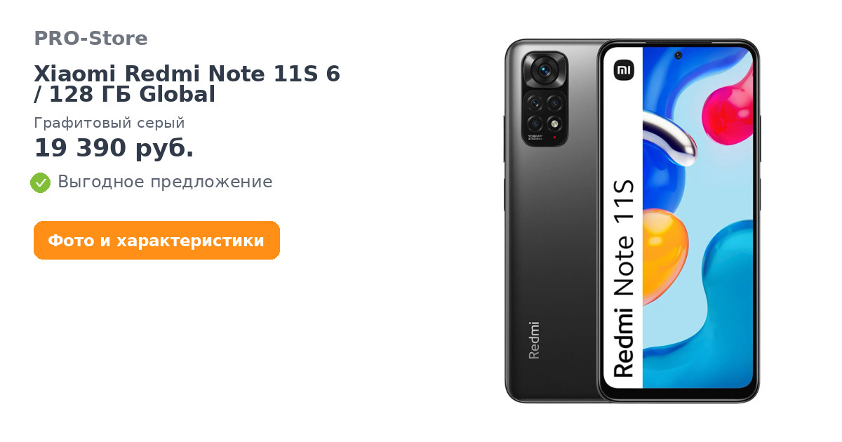 Смартфон Xiaomi Redmi Note 11S 6/128 ГБ Global, Графитовый серый