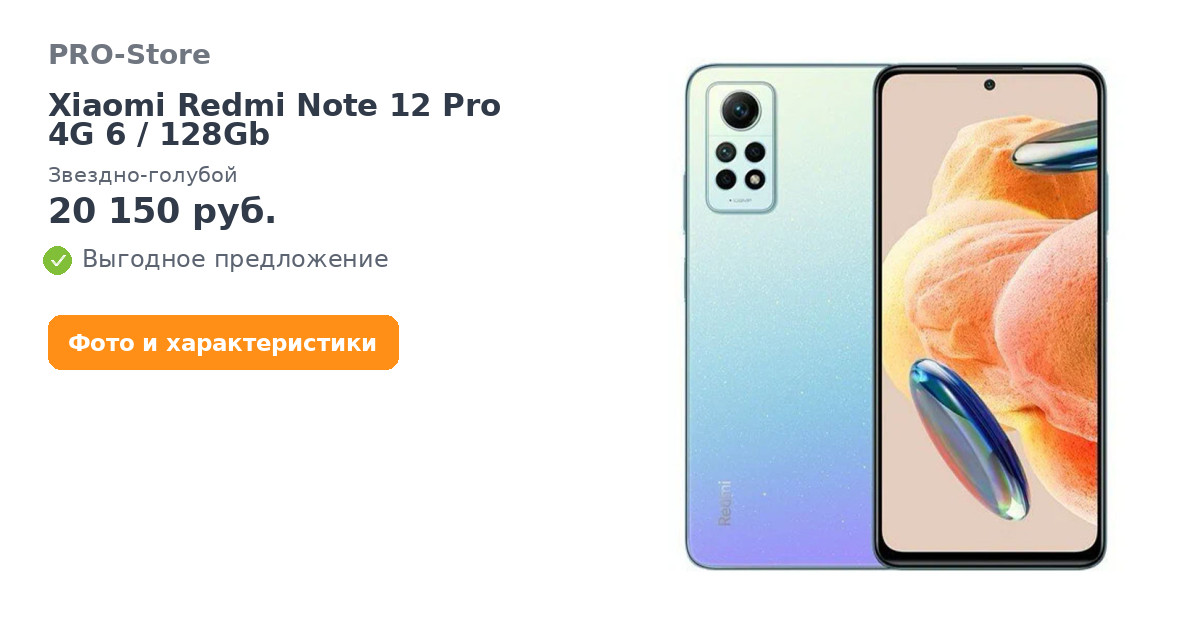 Смартфон Xiaomi Redmi Note 12 Pro 4G 6/128Gb, Звездно-голубой