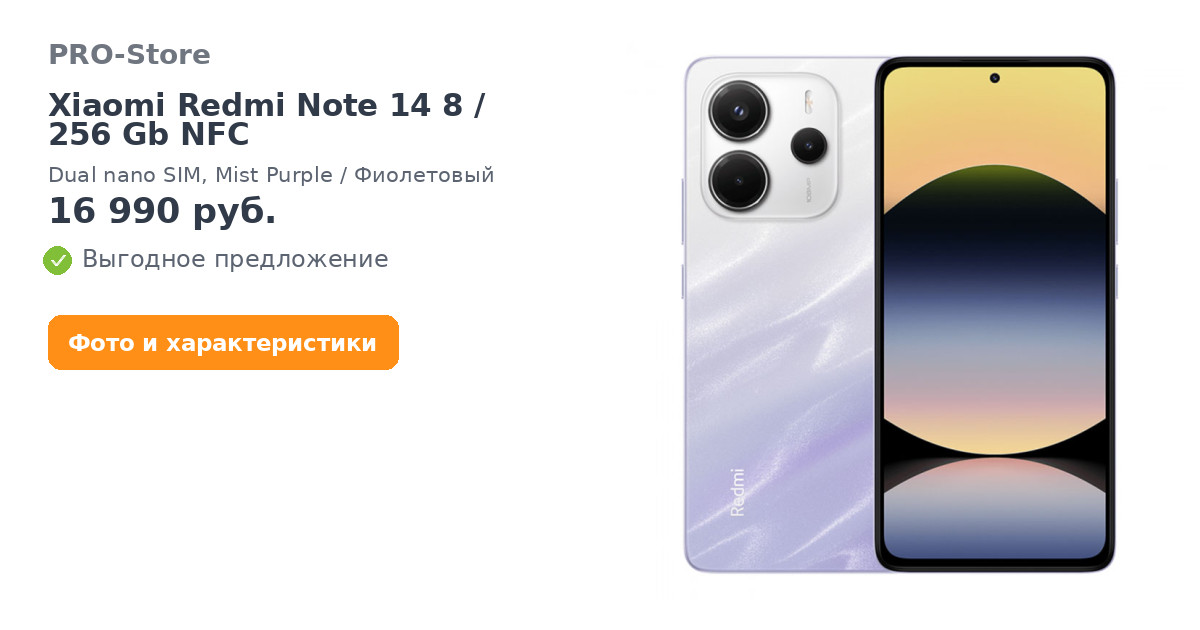 Смартфон Xiaomi Redmi Note 14 8/256 Gb NFC, Dual nano SIM, Mist Purple/Фиолетовый