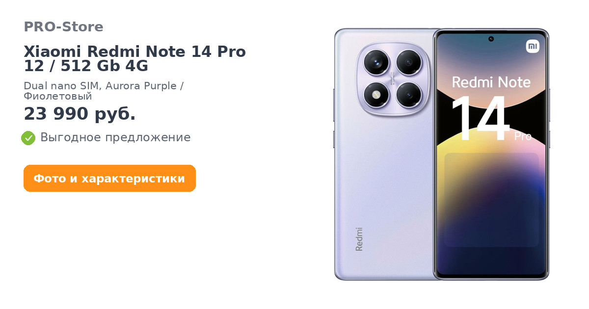 Смартфон Xiaomi Redmi Note 14 Pro 12/512 Gb 4G, Dual nano SIM, Aurora Purple/Фиолетовый