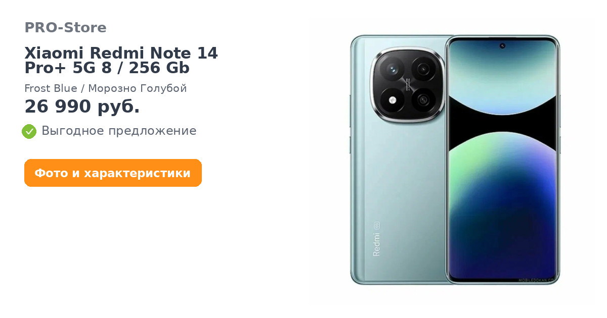 Смартфон Xiaomi Redmi Note 14 Pro+ 5G 8/256 Gb, Frost Blue/Морозно Голубой