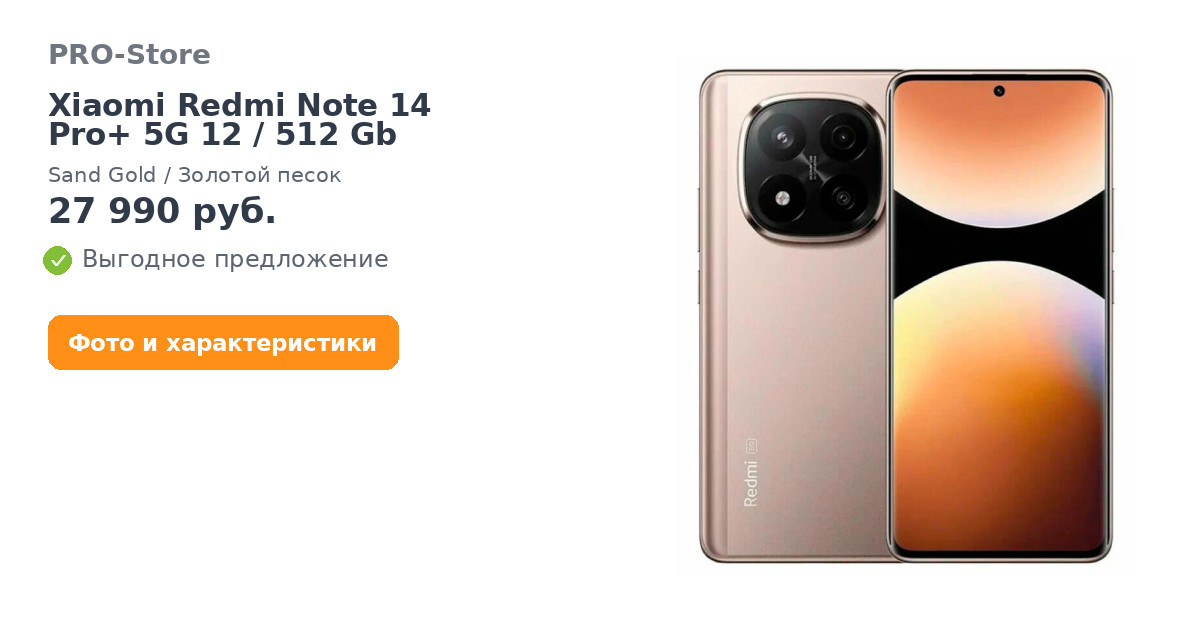 Смартфон Xiaomi Redmi Note 14 Pro+ 5G 12/512 Gb, Sand Gold/Золотой песок
