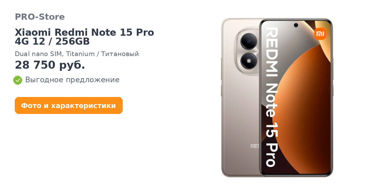 Смартфон Xiaomi Redmi Note 15 Pro 4G 12/256GB, Dual nano SIM, Titanium/Титановый