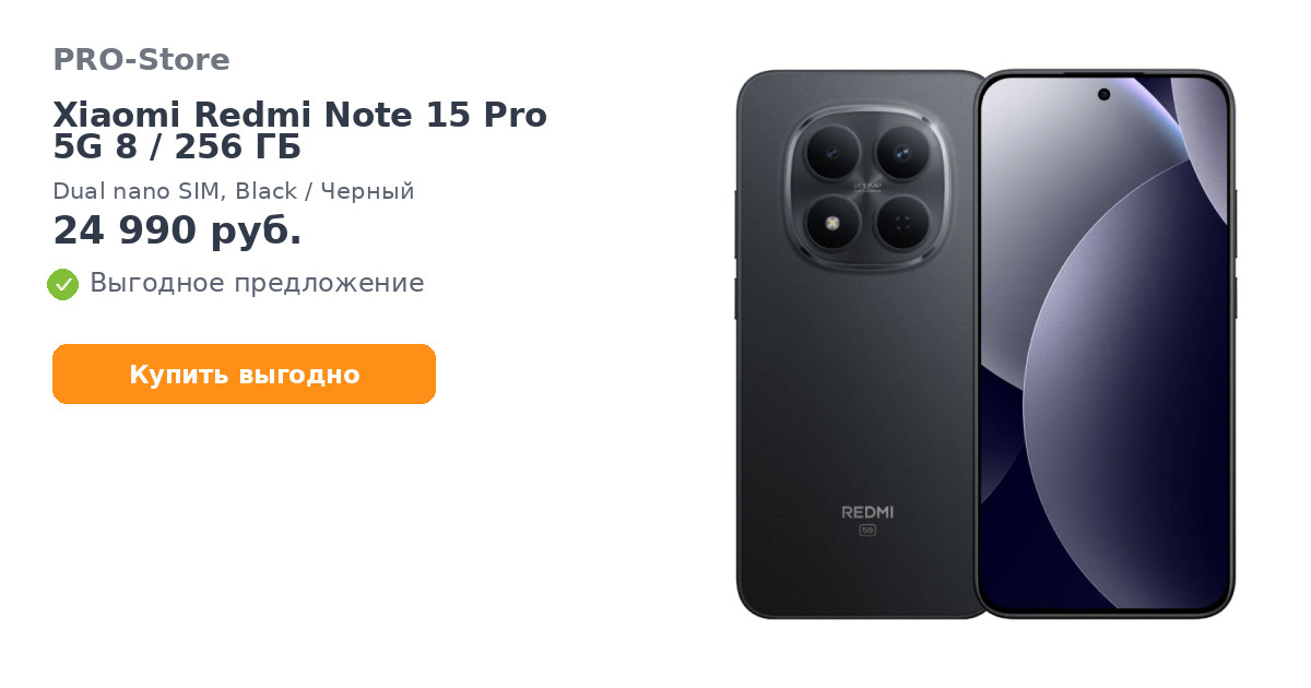 Смартфон Xiaomi Redmi Note 15 Pro 5G 8/256 ГБ, Dual nano SIM, Black/Черный